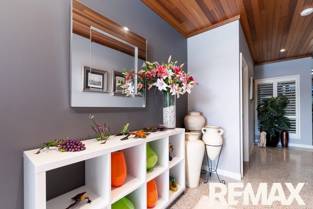 Polished concrete floors to living areas and the raised ceilings under a skillion thermal solar span roof, all impress once you have accessed through the wide entry door and cedar lined portico.
