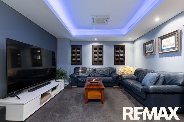 There is a separate theater room behind double doors. With thick plush carpets, LED feature blue ceiling lighting, reverse cycle cassette air conditioner and plantation shutters, this room is plenty large enough for the family viewing time to be relaxing.