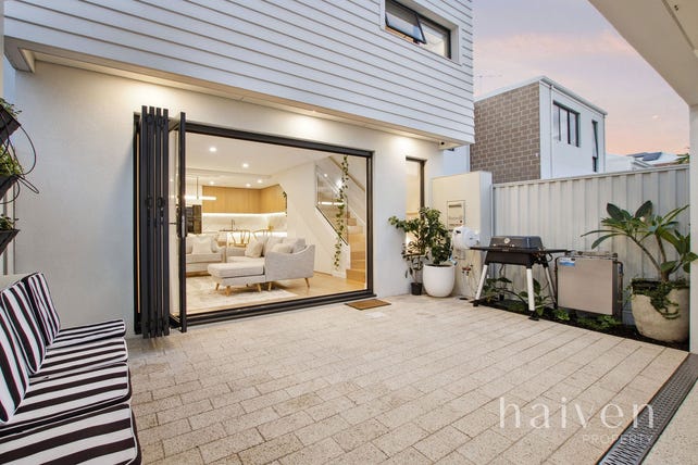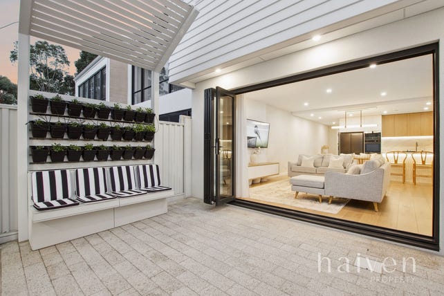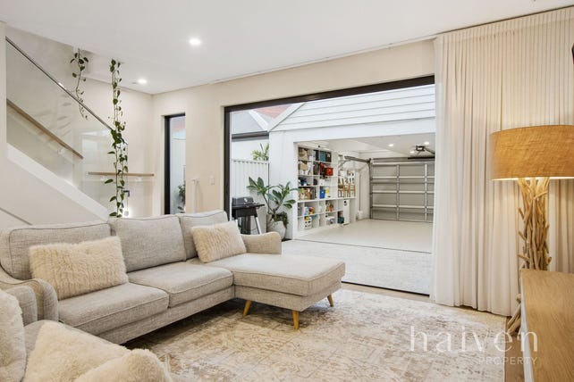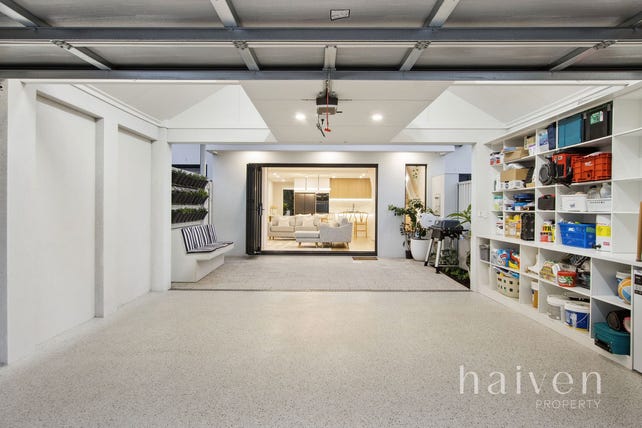 Bi-fold doors seamlessly extend entertaining out to a paved back courtyard, with custom seating. The secure remote-controlled double lock-up carport can be accessed from here also and offers bonus mezzanine storage space, off the rear lane.