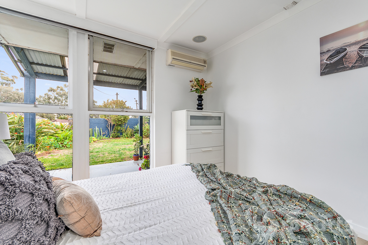 Accommodation is comprised of three well-appointed bedrooms, each promising a restful night's sleep, with the bathroom conveniently situated down the hallway. The master bedroom and a secondary bedroom, along with the living space, are equipped with split system air conditioning units to ensure year-round comfort.