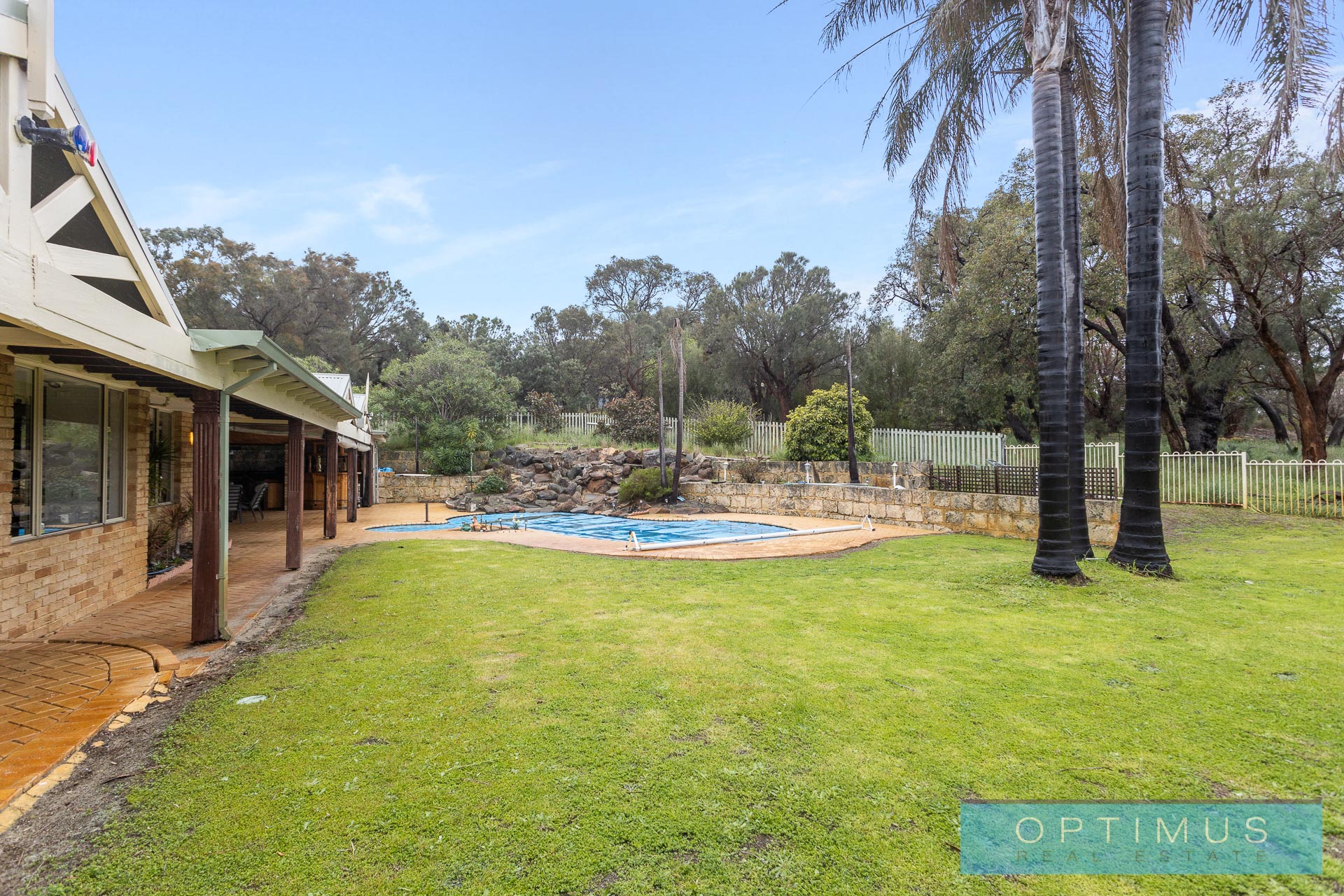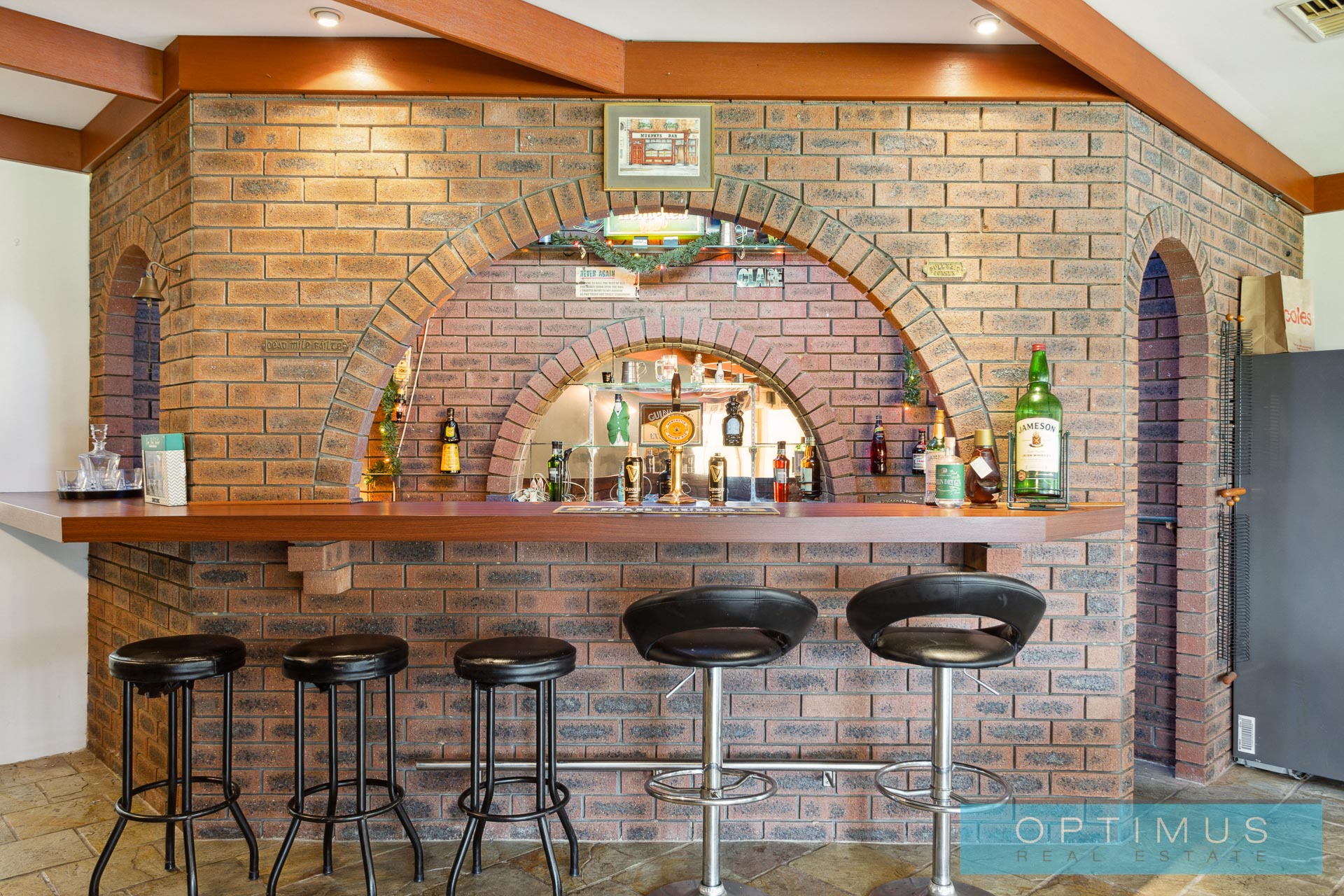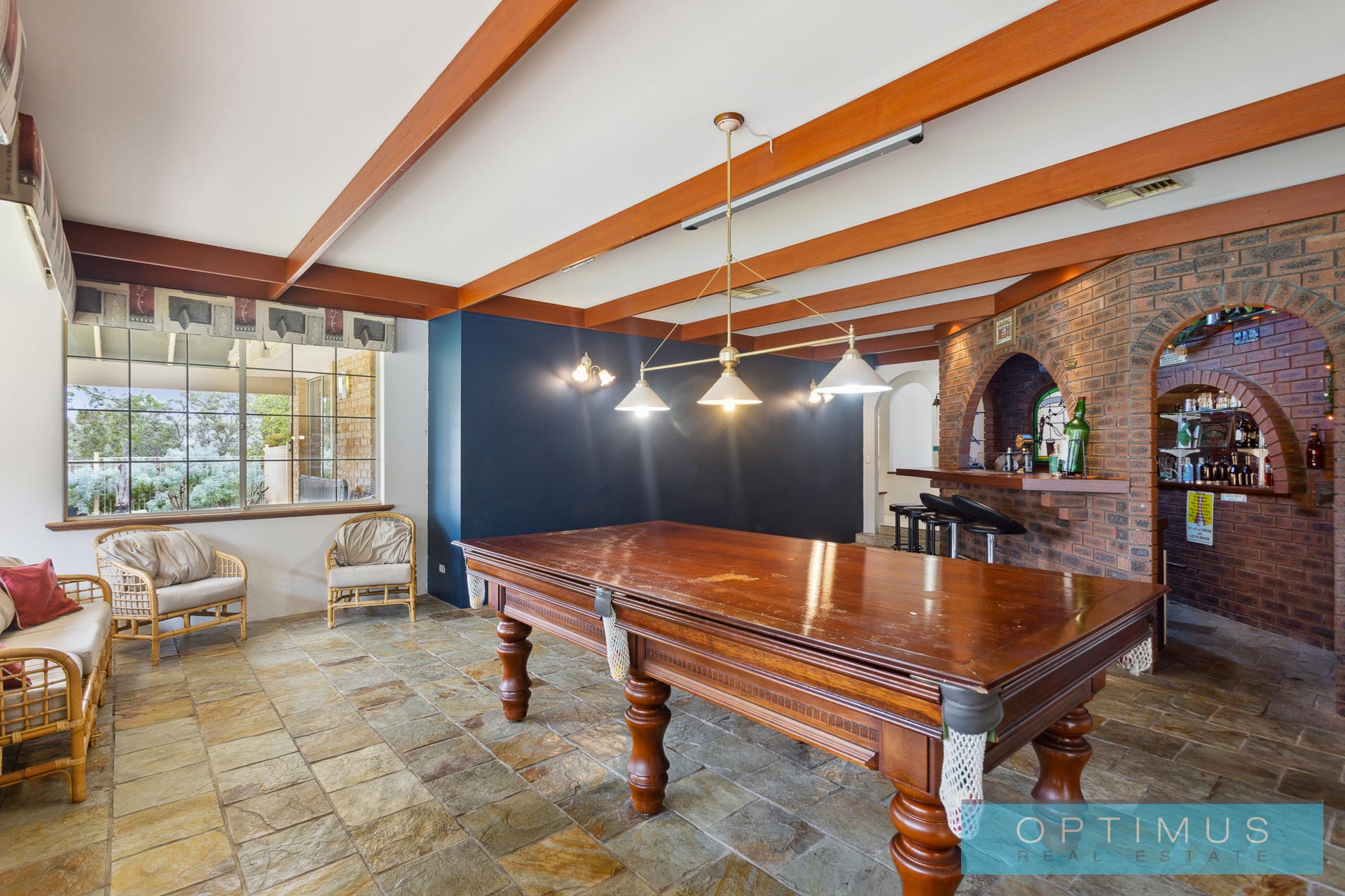 A n IMPRESSIVE 120 sqm timber lined undercover patio overlooks pool with views to Darling Escarpment beyond, perfect for sundowner drinks.