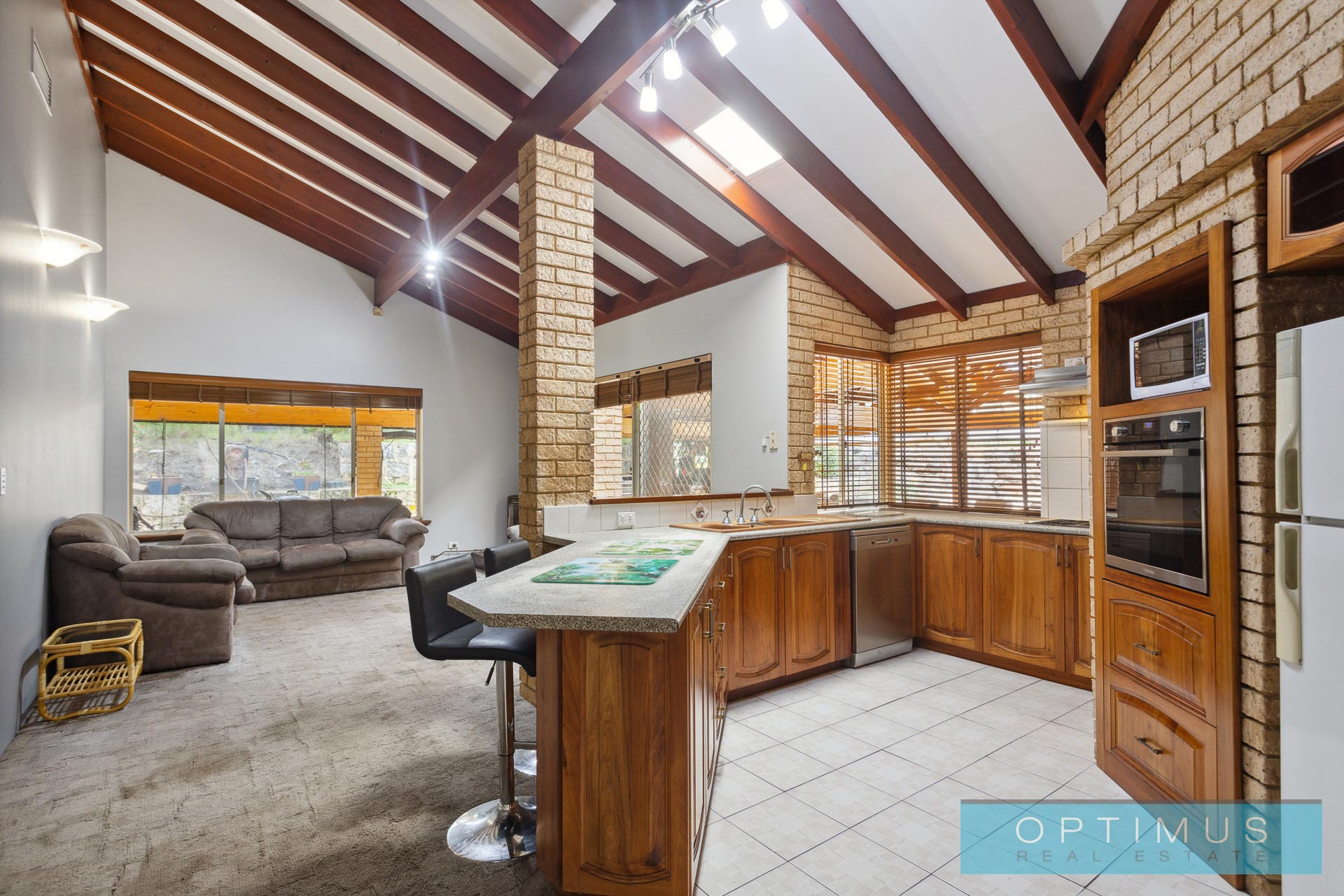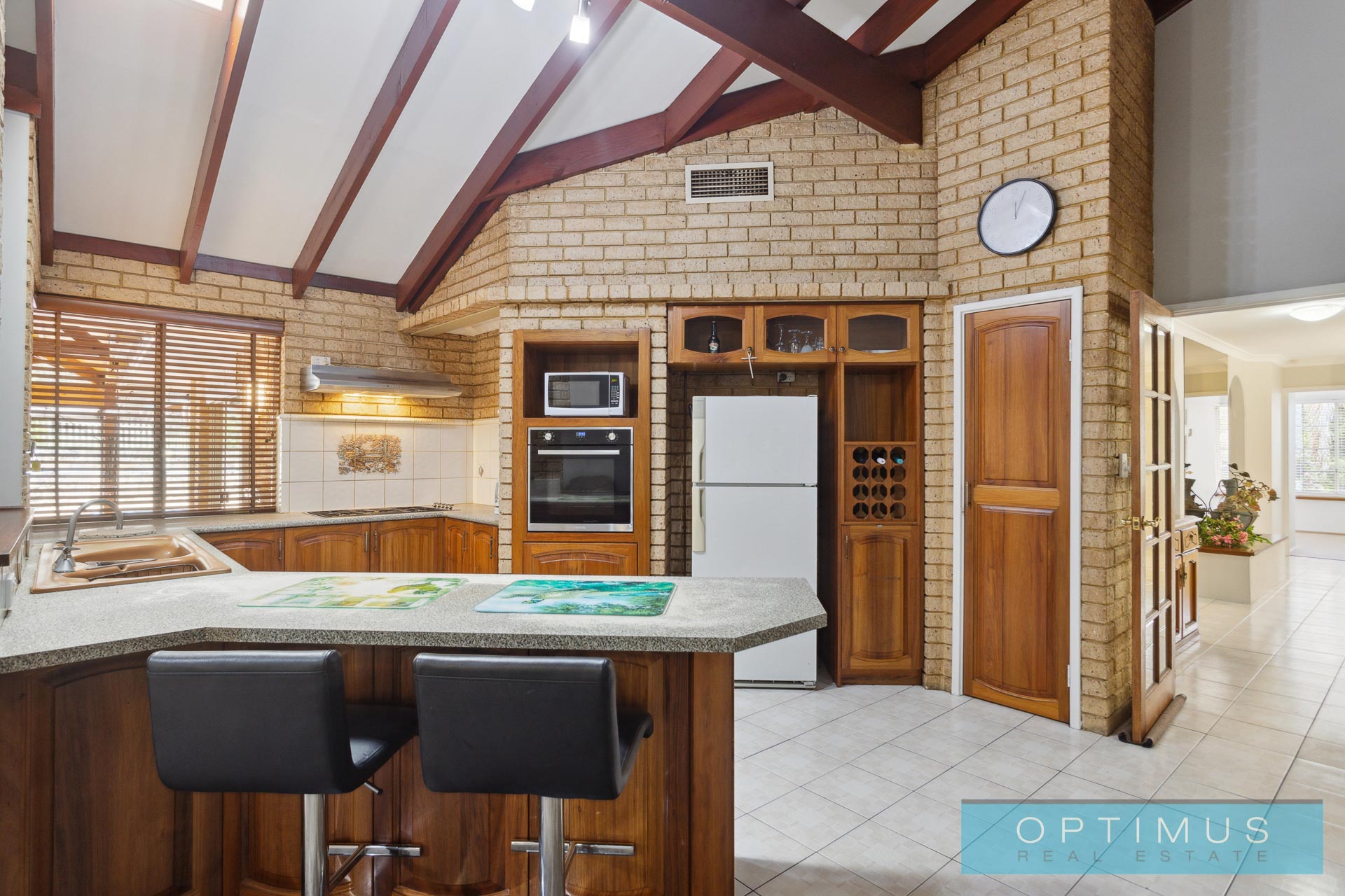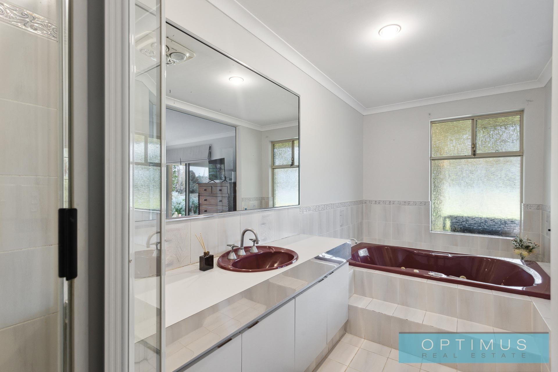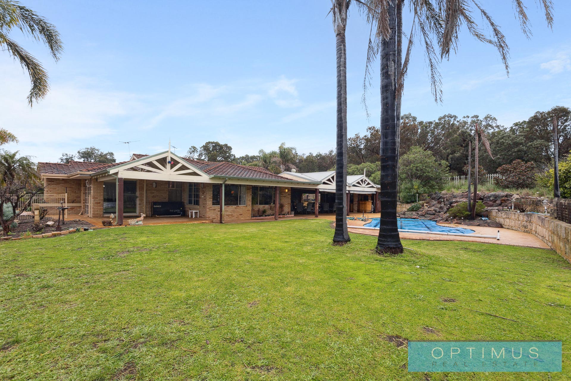 A n IMPRESSIVE 120 sqm timber lined undercover patio overlooks pool with views to Darling Escarpment beyond, perfect for sundowner drinks.