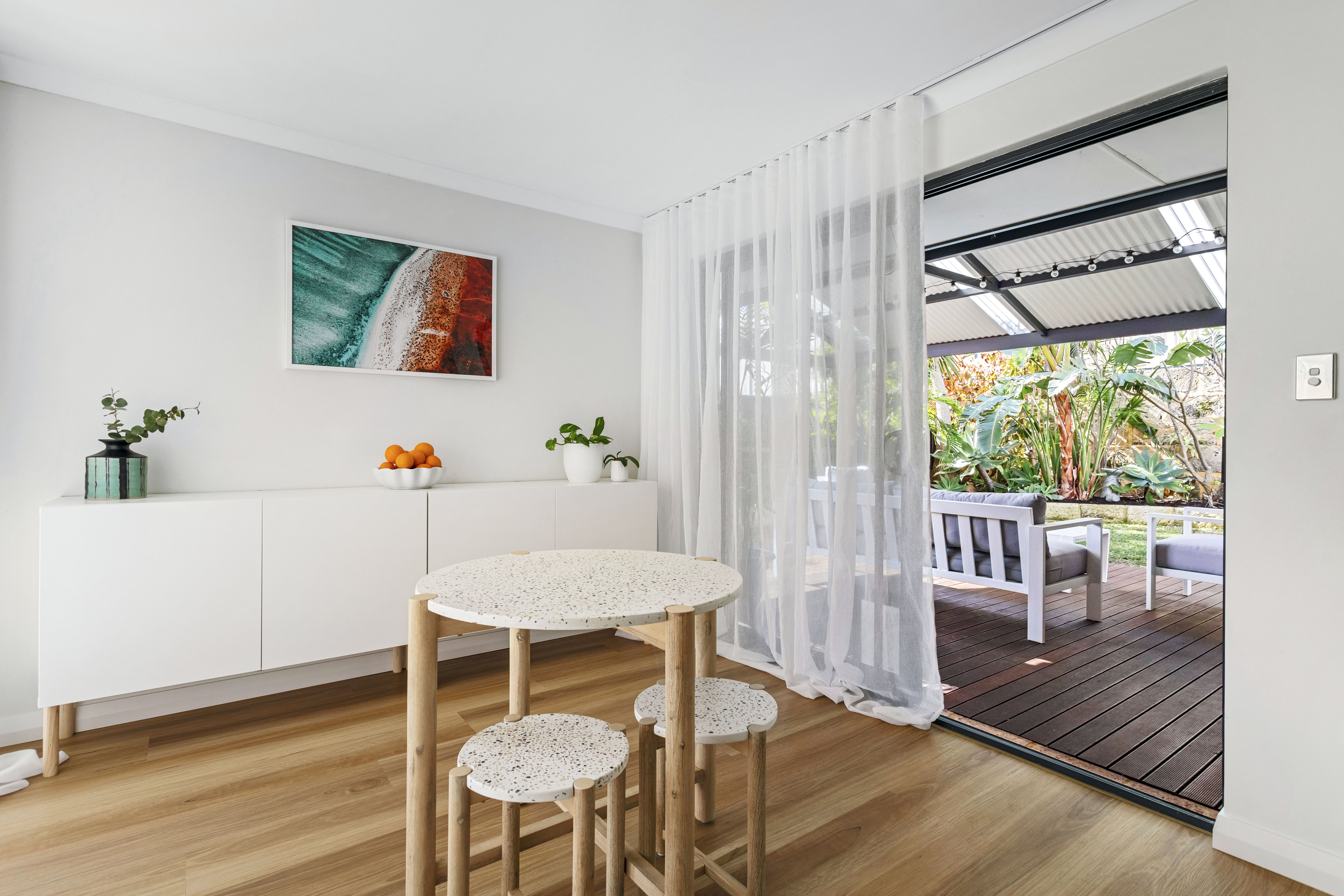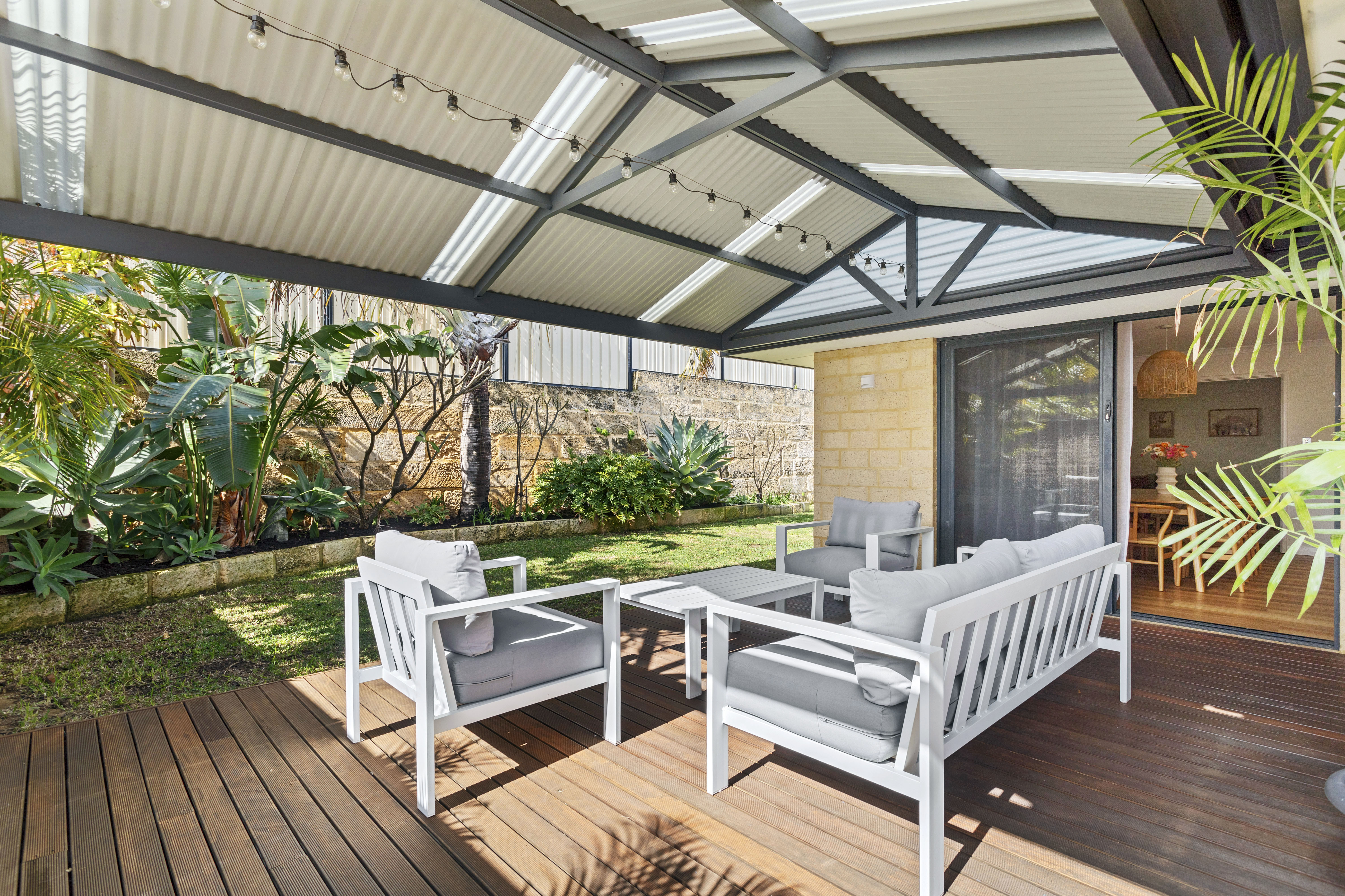 The secure lock-up garage provides peace of mind for your vehicle and extra storage options. Then step outside, and you'll find the undercover alfresco area, perfect for entertaining and seamlessly connecting indoor and outdoor living, with views of the beautifully landscaped garden.