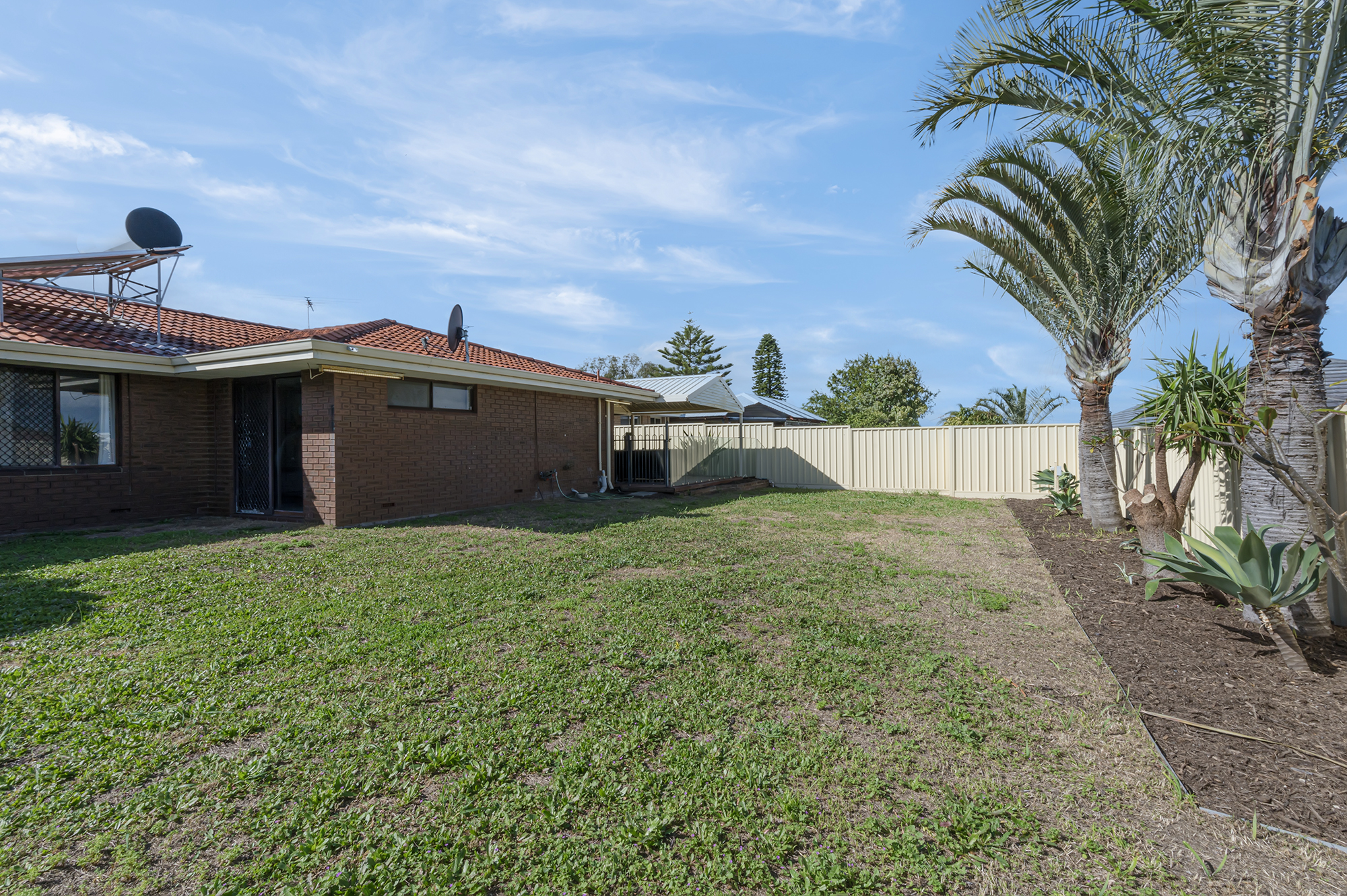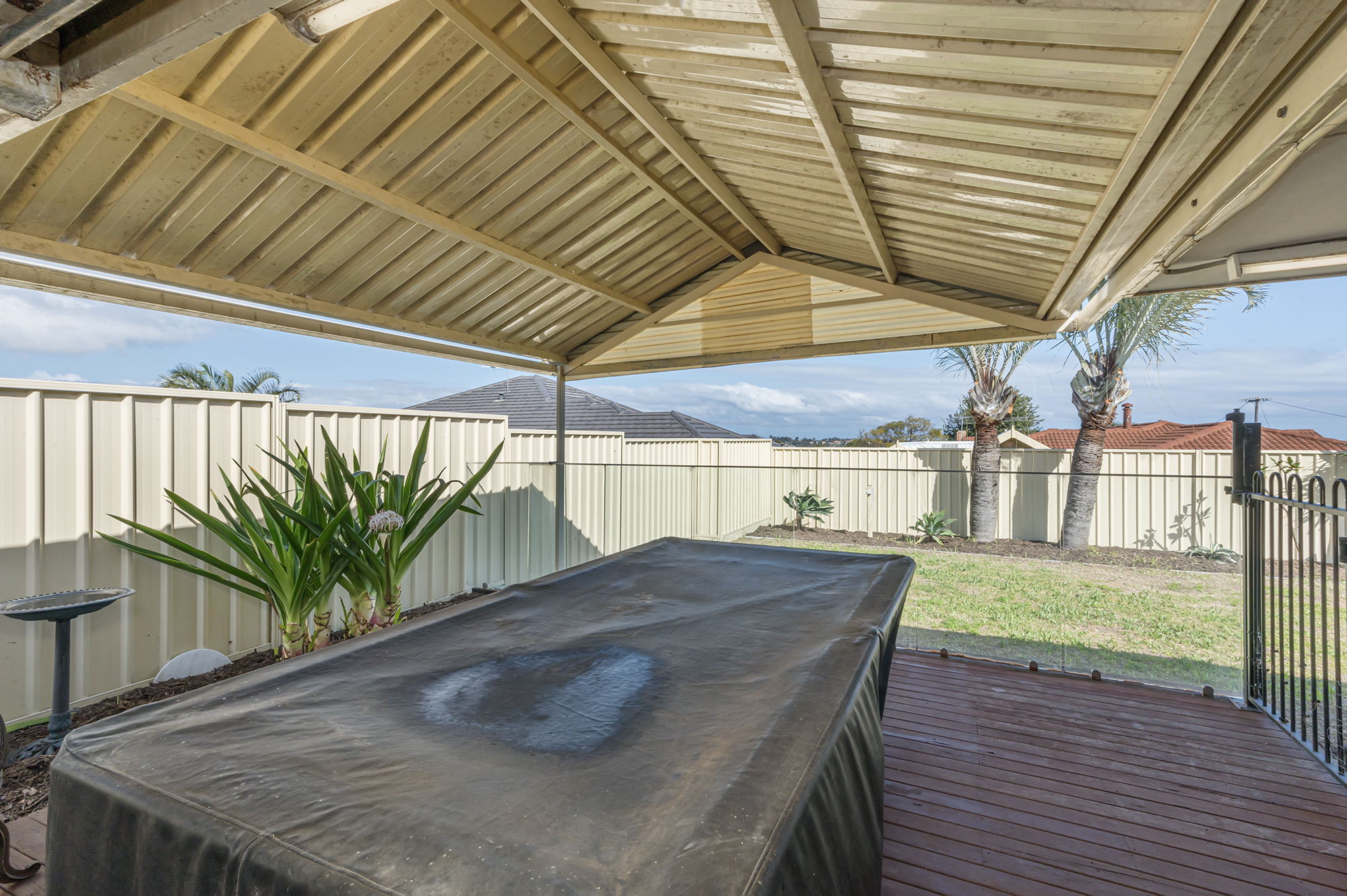 Solar hot water system Secure, colourbond fence Large exterior featuring palm trees Huge outdoor, undercover decked alfresco area with lights and wall heater