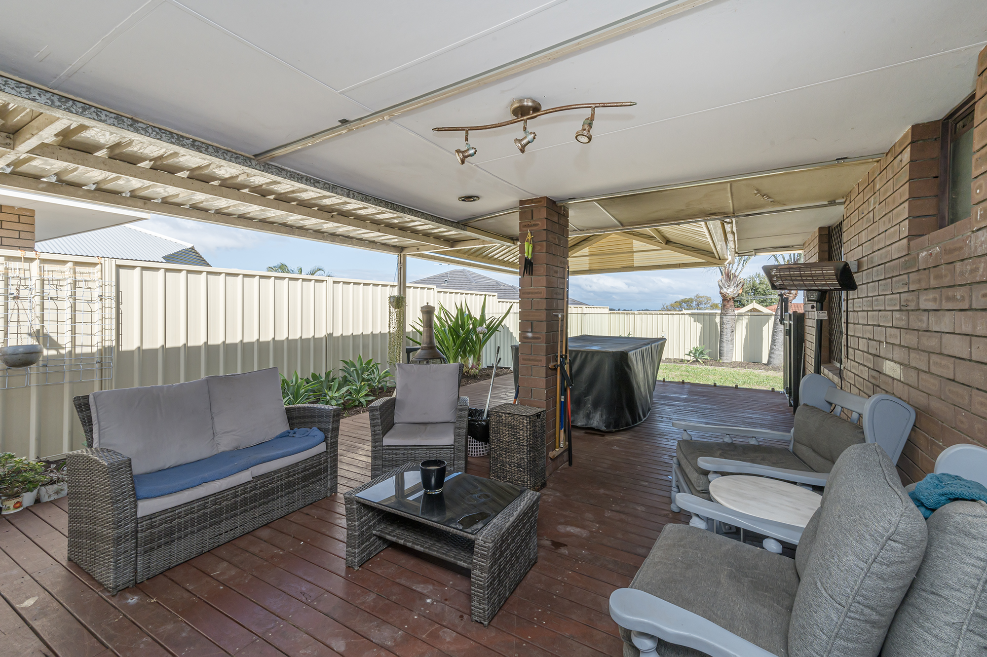 Open up your sliding doors and extend your living spaces with a decked, alfresco area. This is a wonderful, undercover sanctuary for both relaxing and entertaining, sheltered from the elements with outdoor lights, and easily big enough for outdoor furniture.