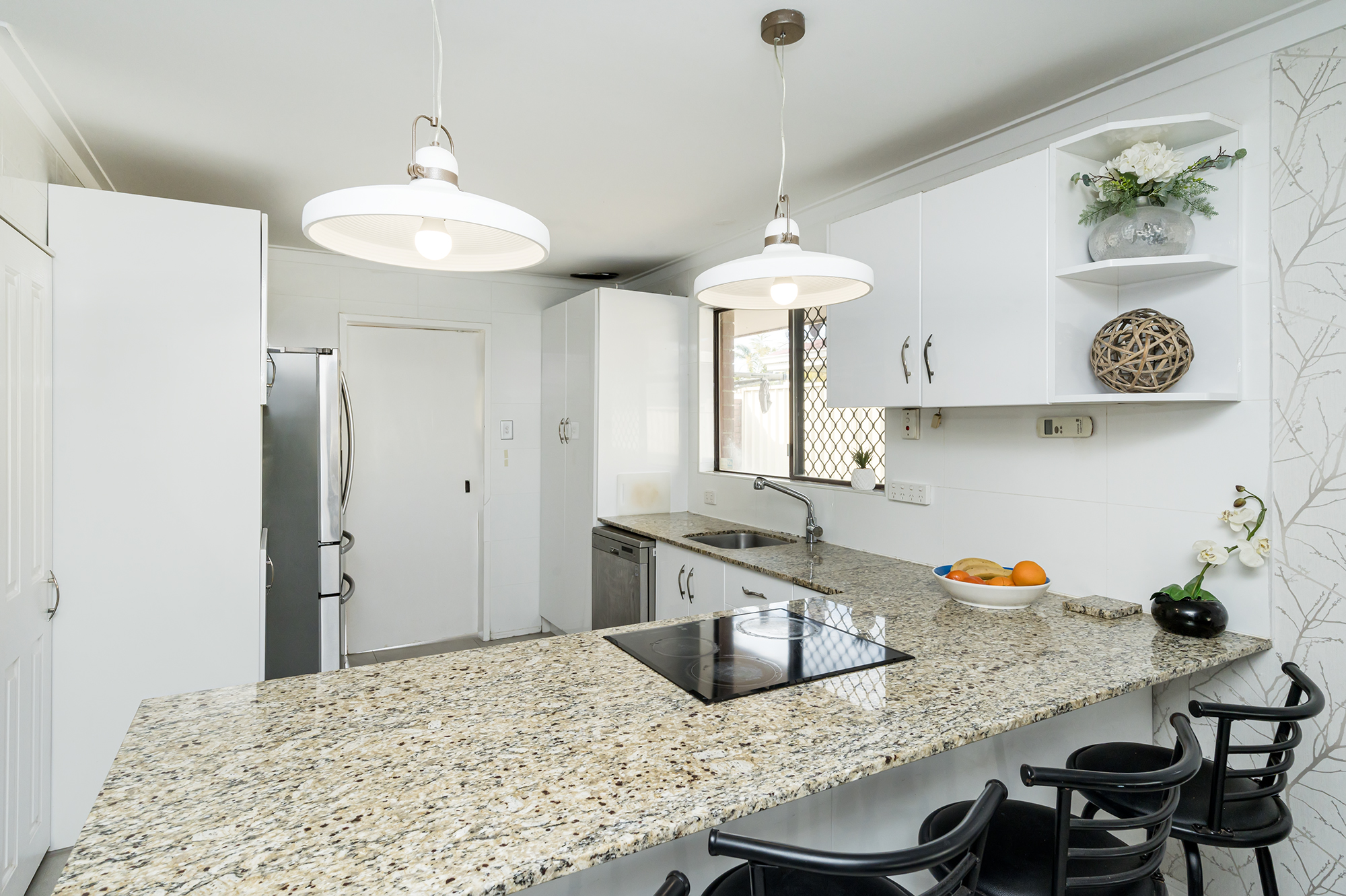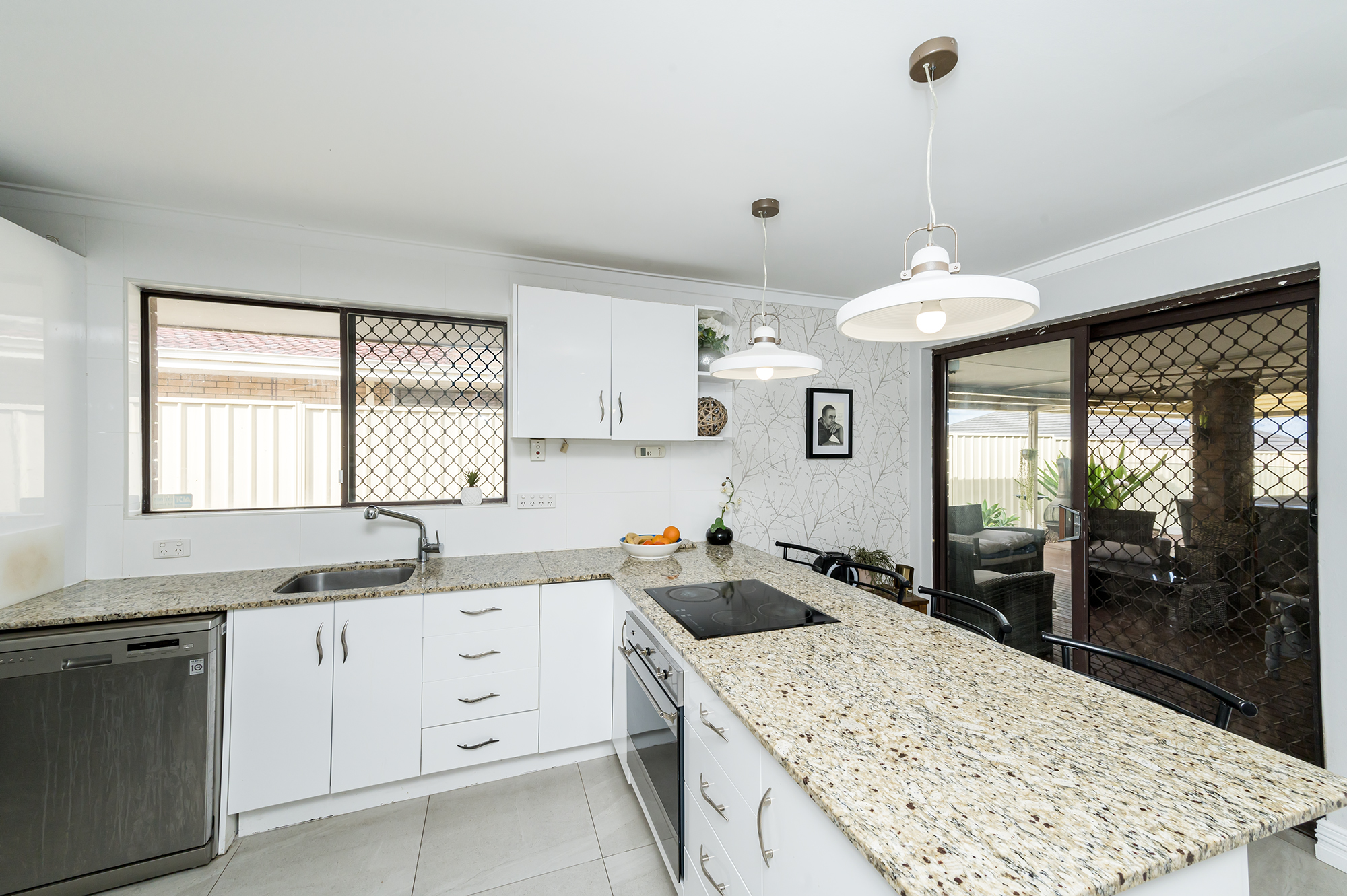 Well-appointed kitchen with stone benchtops, built in over, electric hot plate, ample bench space and breakfast bar Generous dining room