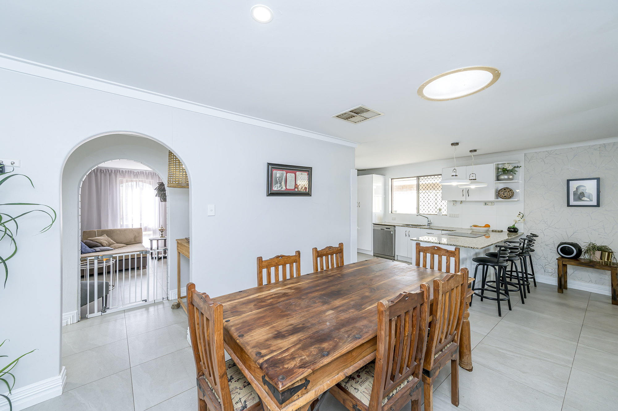Light and bright with fresh-faced walls, this home enjoys tiled, open-plan kitchen and dining areas with a separate spacious living room, a welcoming and comfortable room for the whole family to come together and enjoy, plus an exceptional outdoor space.