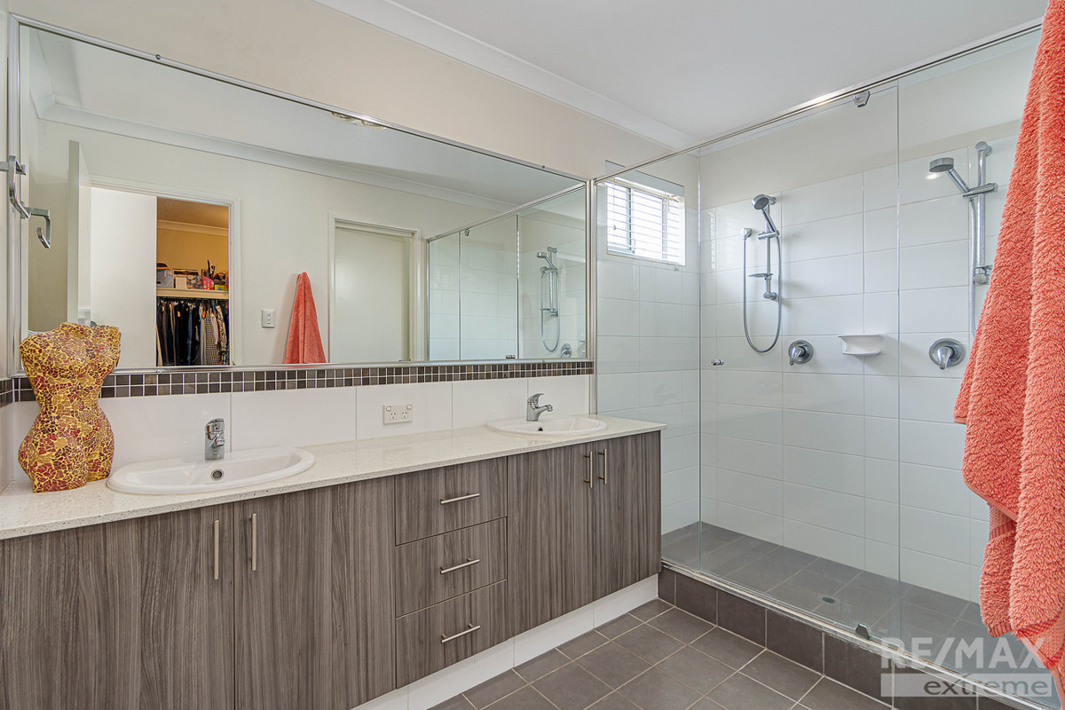 - Vinyl floorboard entry hall - Double size master bedroom includes electric roller shutters, a large walk-in-robe, and an ensuite which includes a large stone top vanity, double shower with 2x shower heads, his and hers porcelain sinks, a double mirror, and a separate toilet