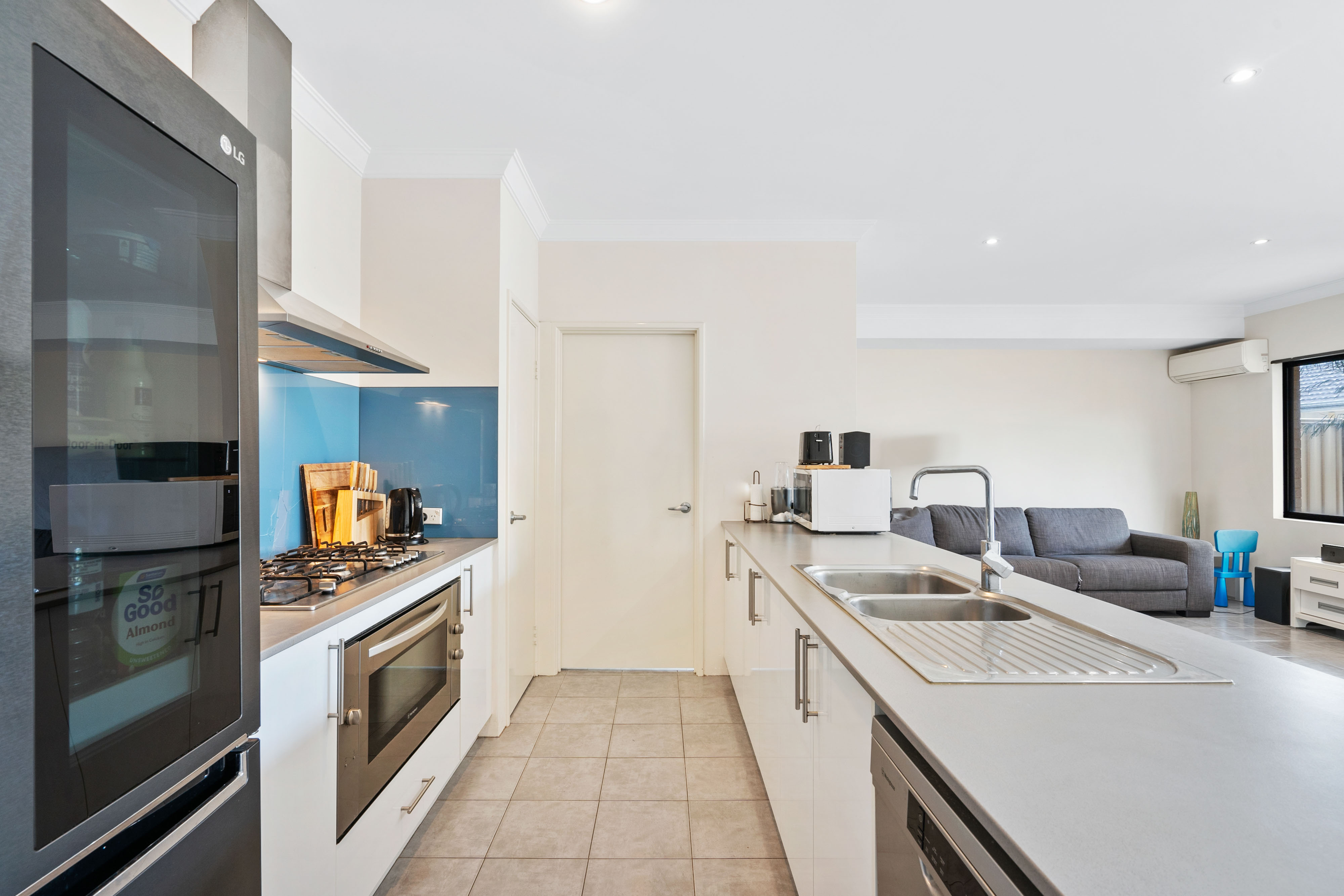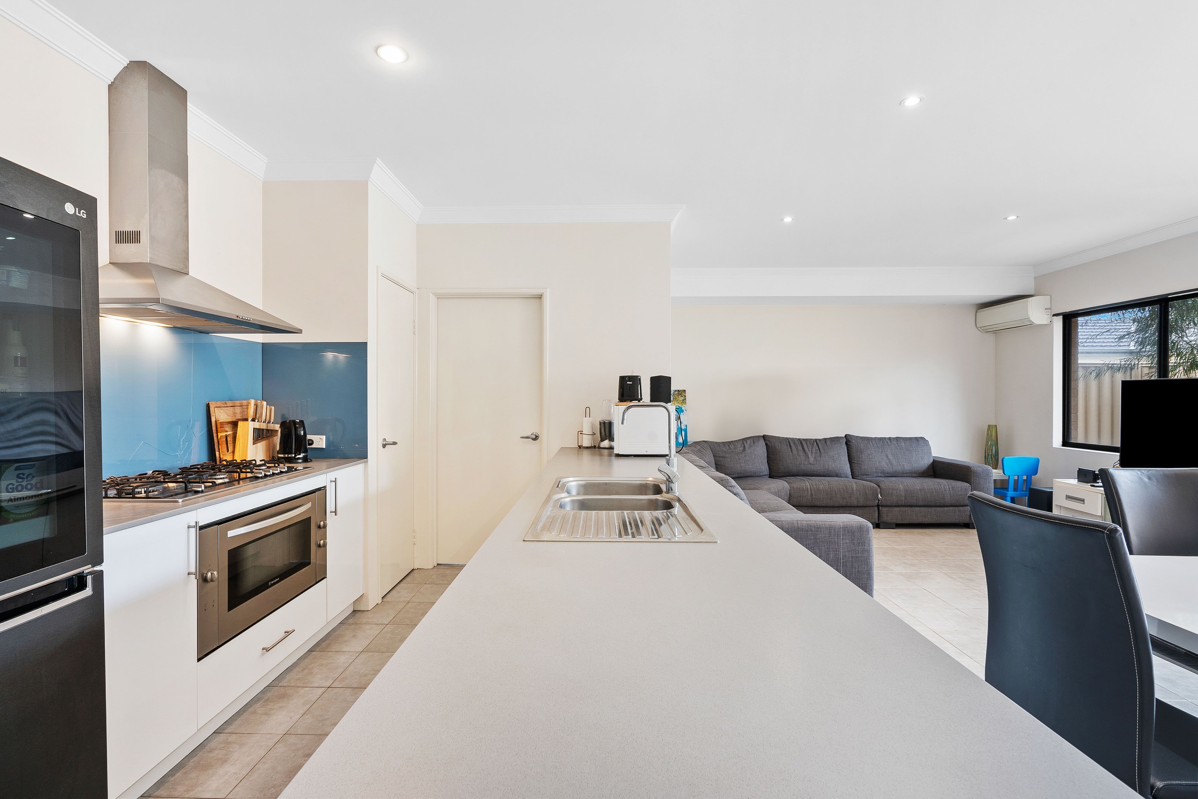 The double lock-up garage offers secure parking along with a storage space, perfect for keeping your belongings organized and also and a convenient shoppers entry for easy access to the home. The modern kitchen is fitted with 900mm Westinghouse oven & 5 burner gas cooktop along with a Westinghouse dishwasher. There is a low-maintenance outdoor space with a paved rear courtyard, perfect for relaxation and entertaining.
