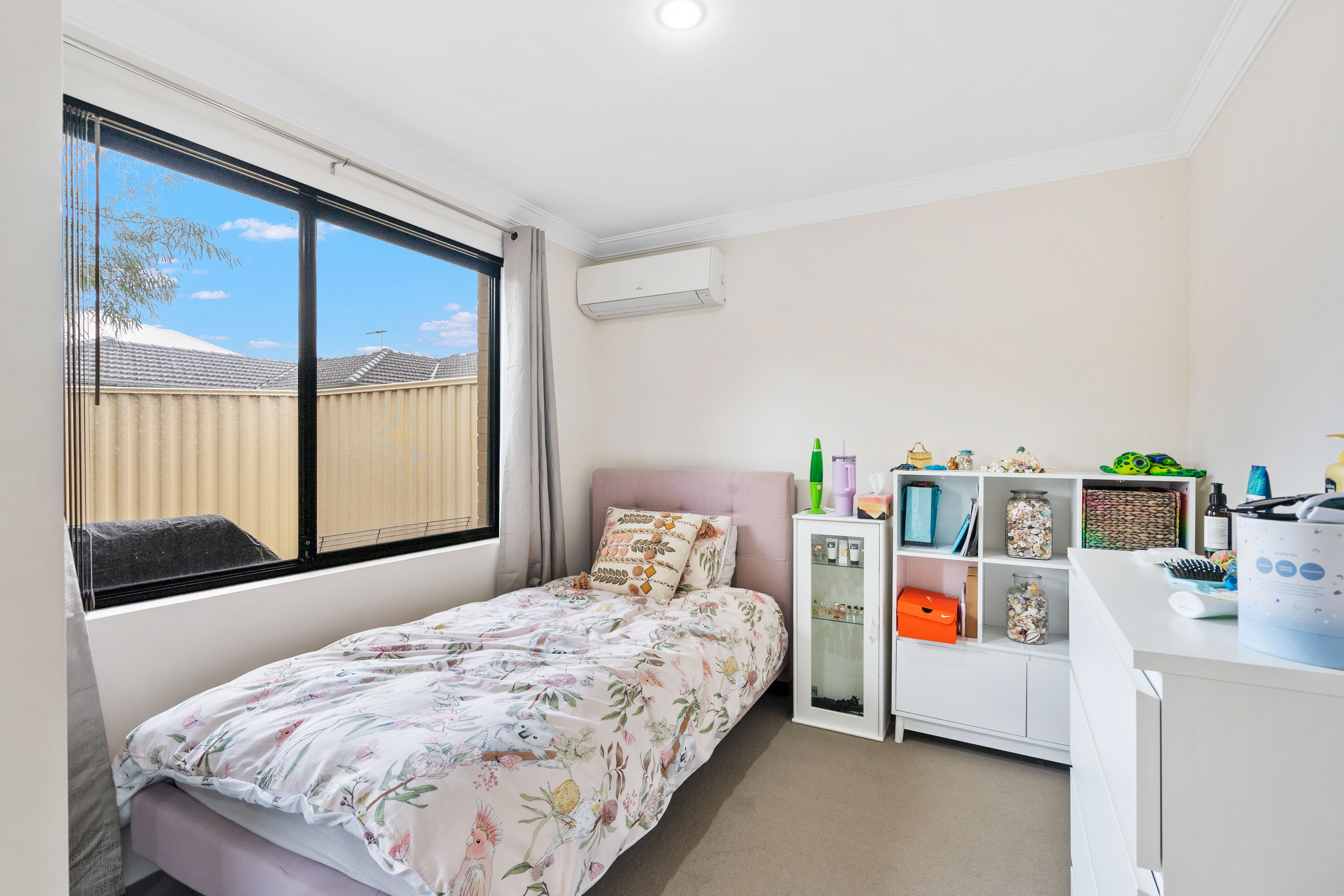 Features: • 218sqm Survey Strata lot • 143sqm house with approx 105sqm of living • Combination kitchen, dining, and living area with tiled floors • Modern finishes with a neutral color scheme throughout • Reverse cycle air conditioning in the living area, master bedroom & bedroom 2 • Double lock-up garage with shoppers entry • Additional storage area off the garage • Modern kitchen with 900mm appliances